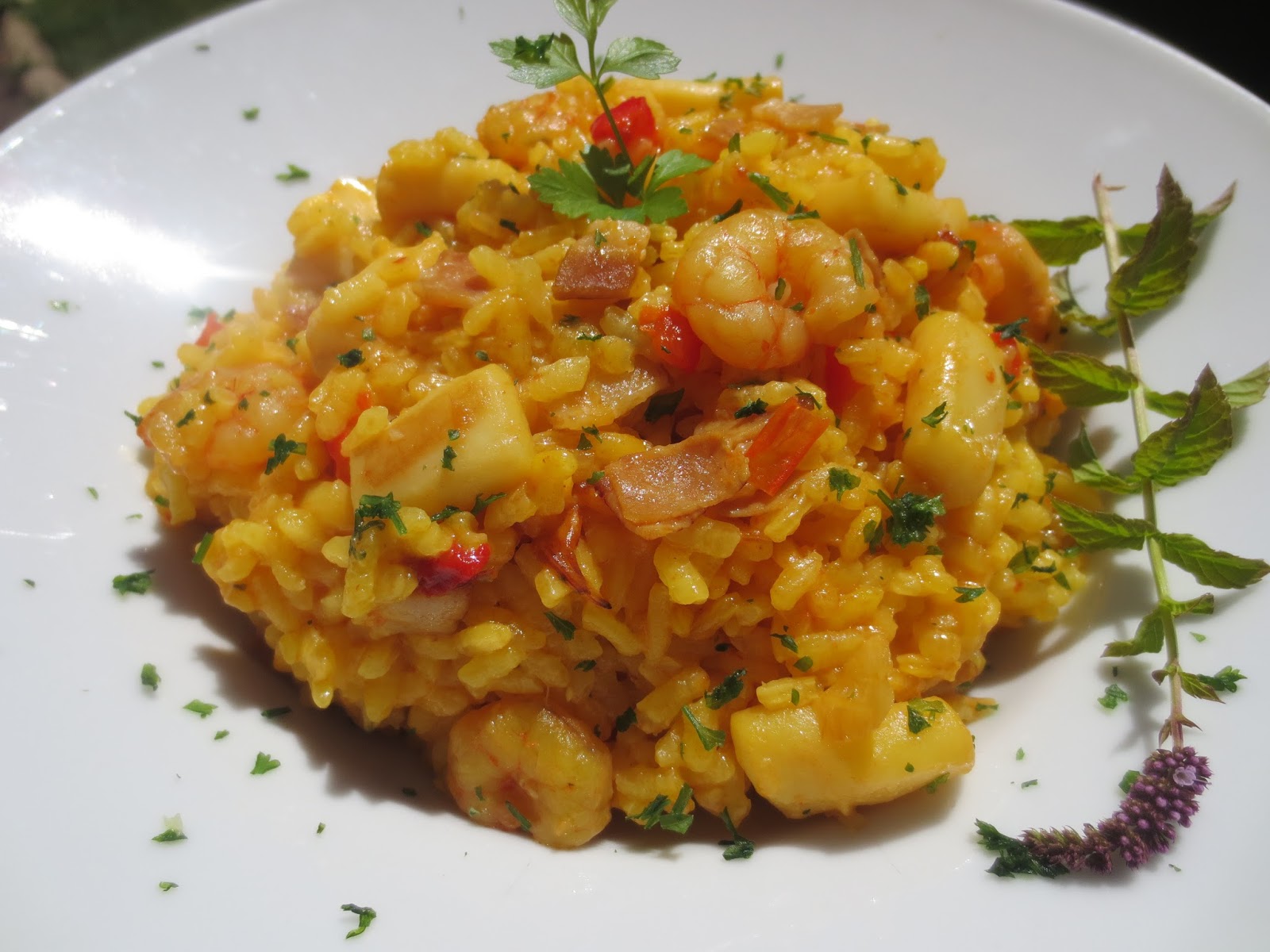 Caldo espeso con camarones, pescado y mejillones al estilo caribeño.