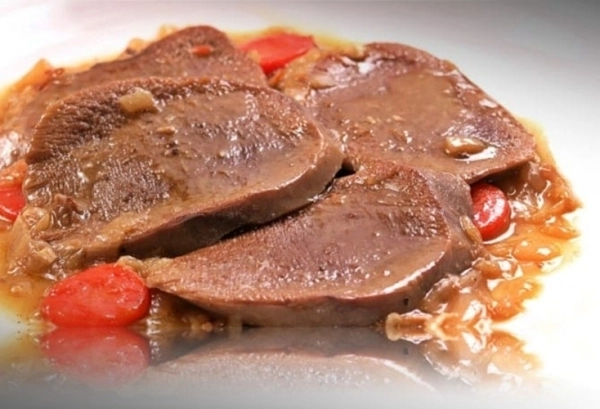Tierna lengua de res cocinada a fuego lento en salsa criolla.